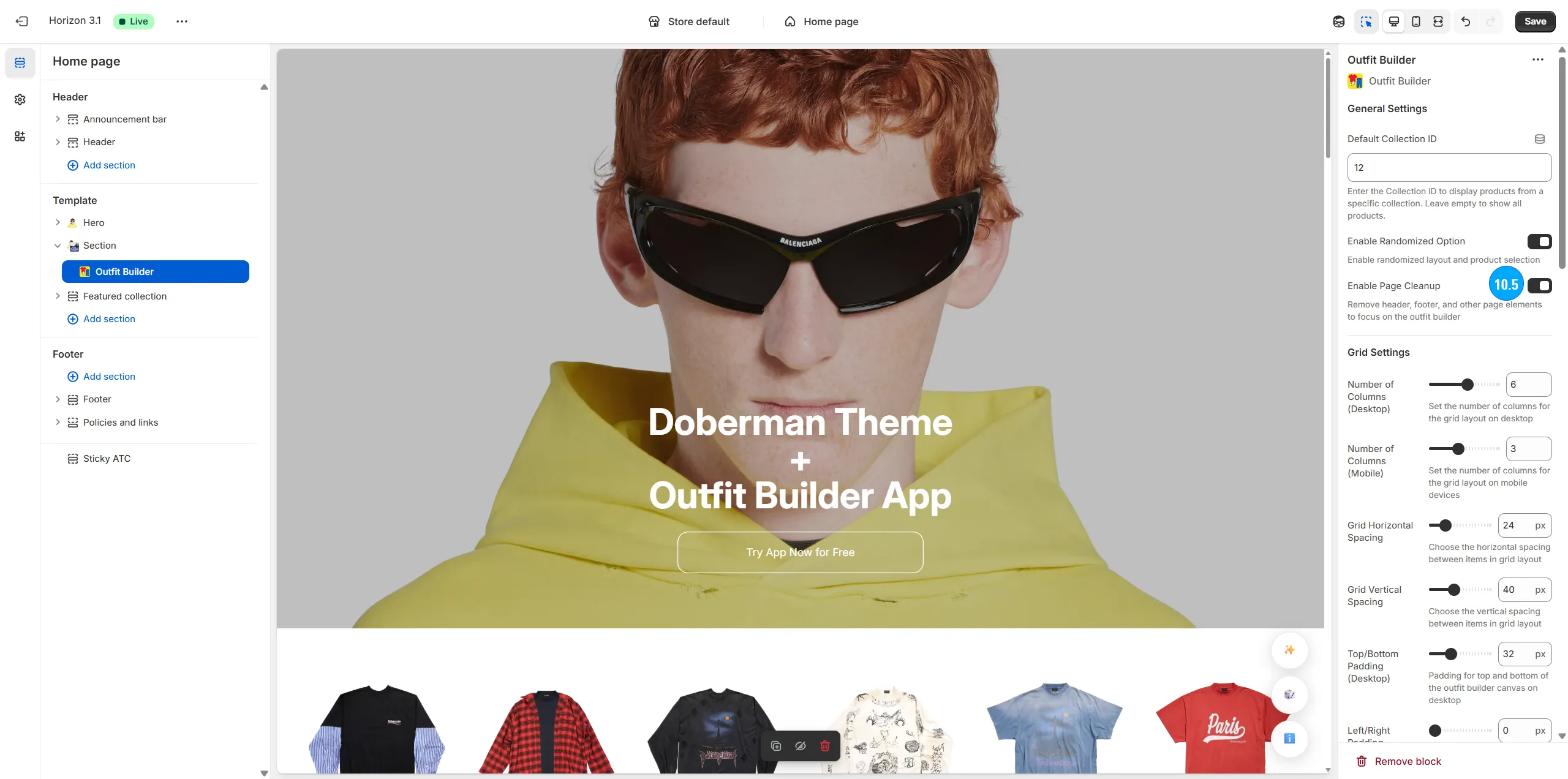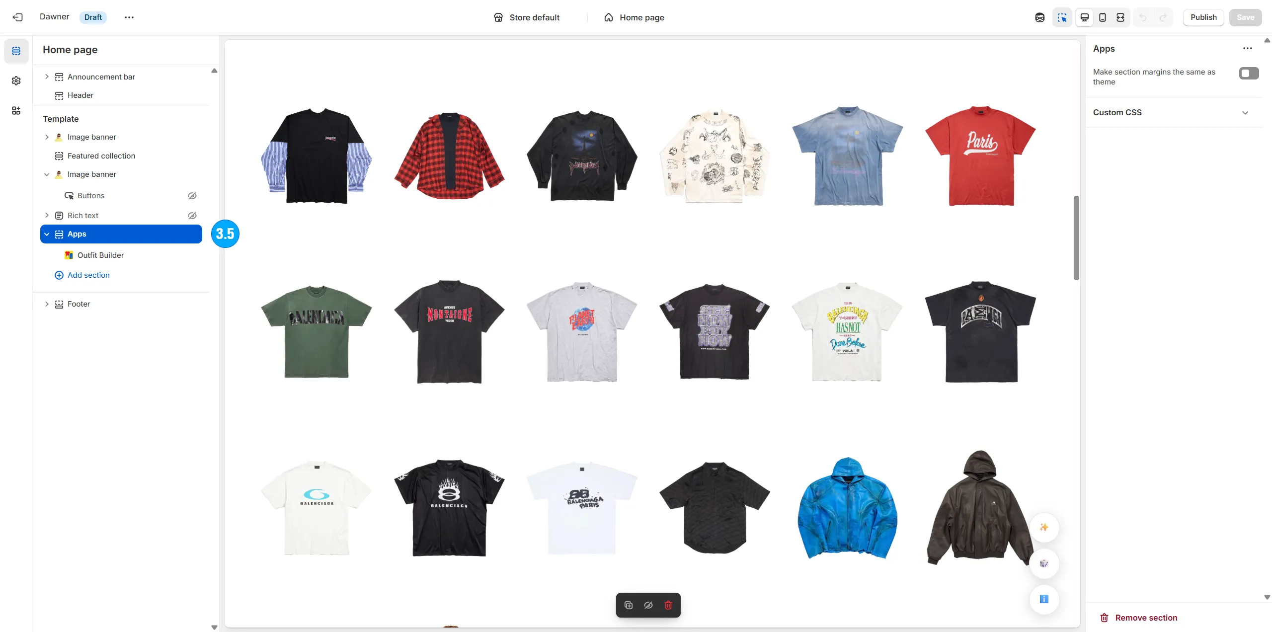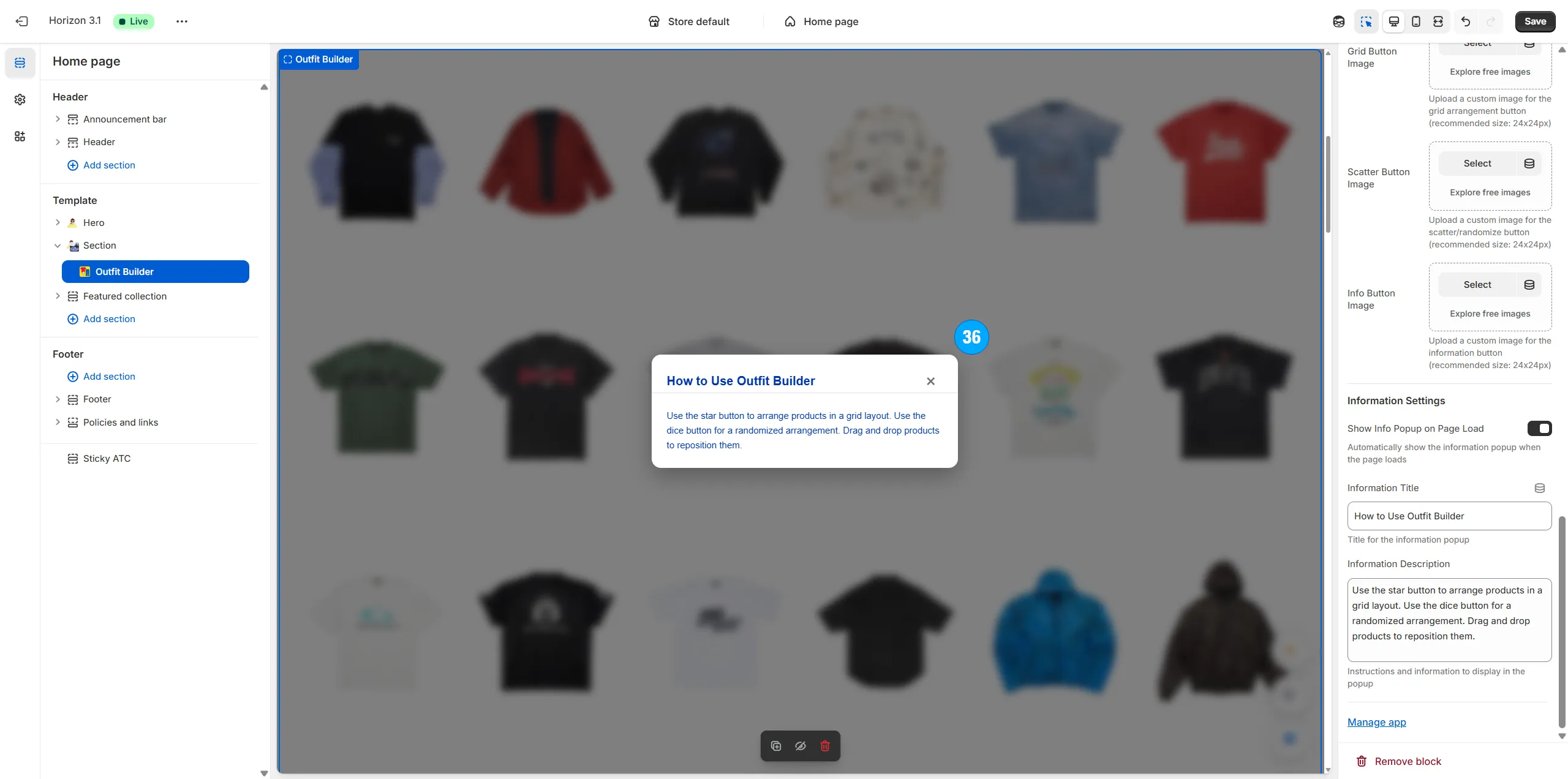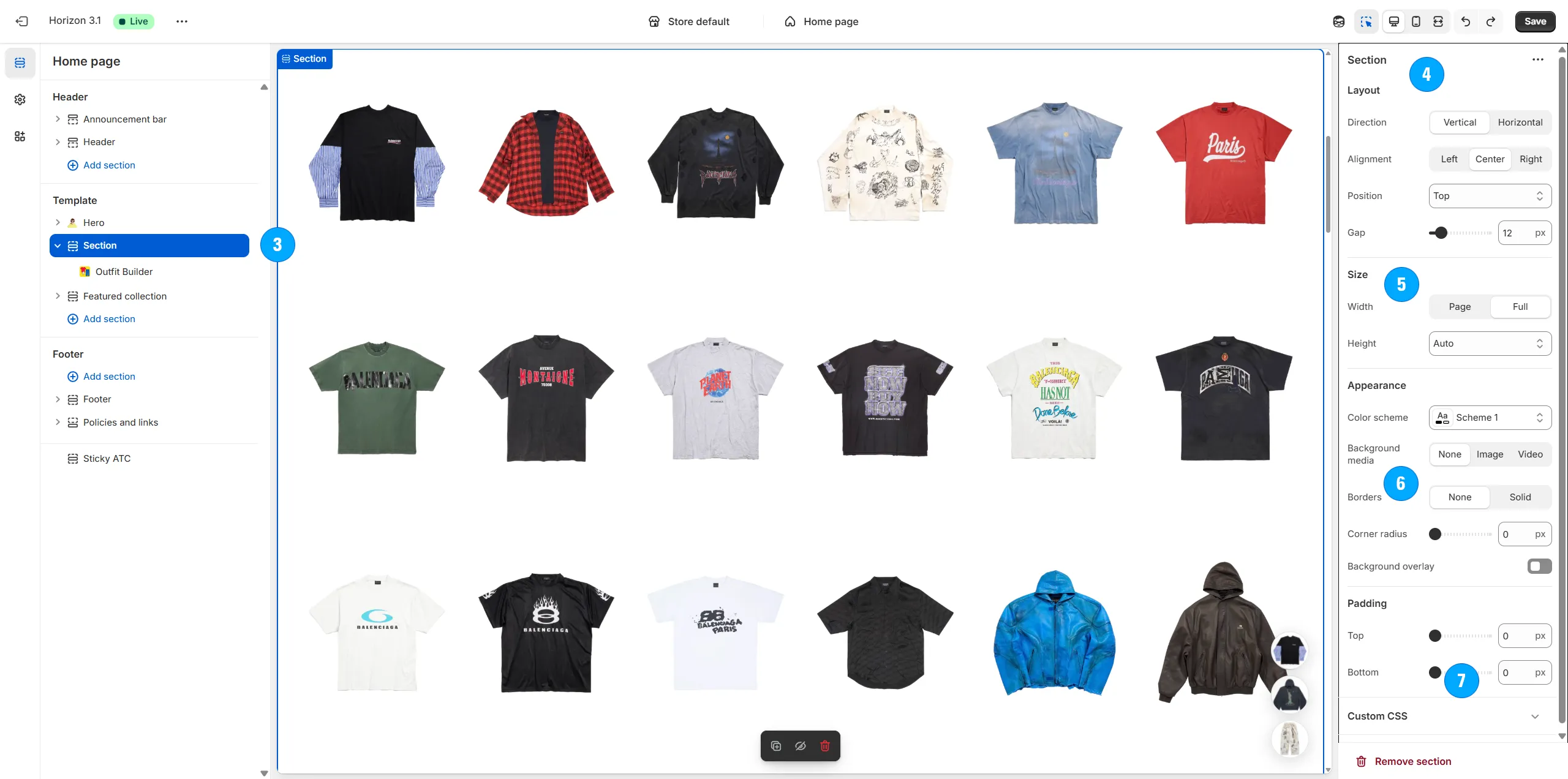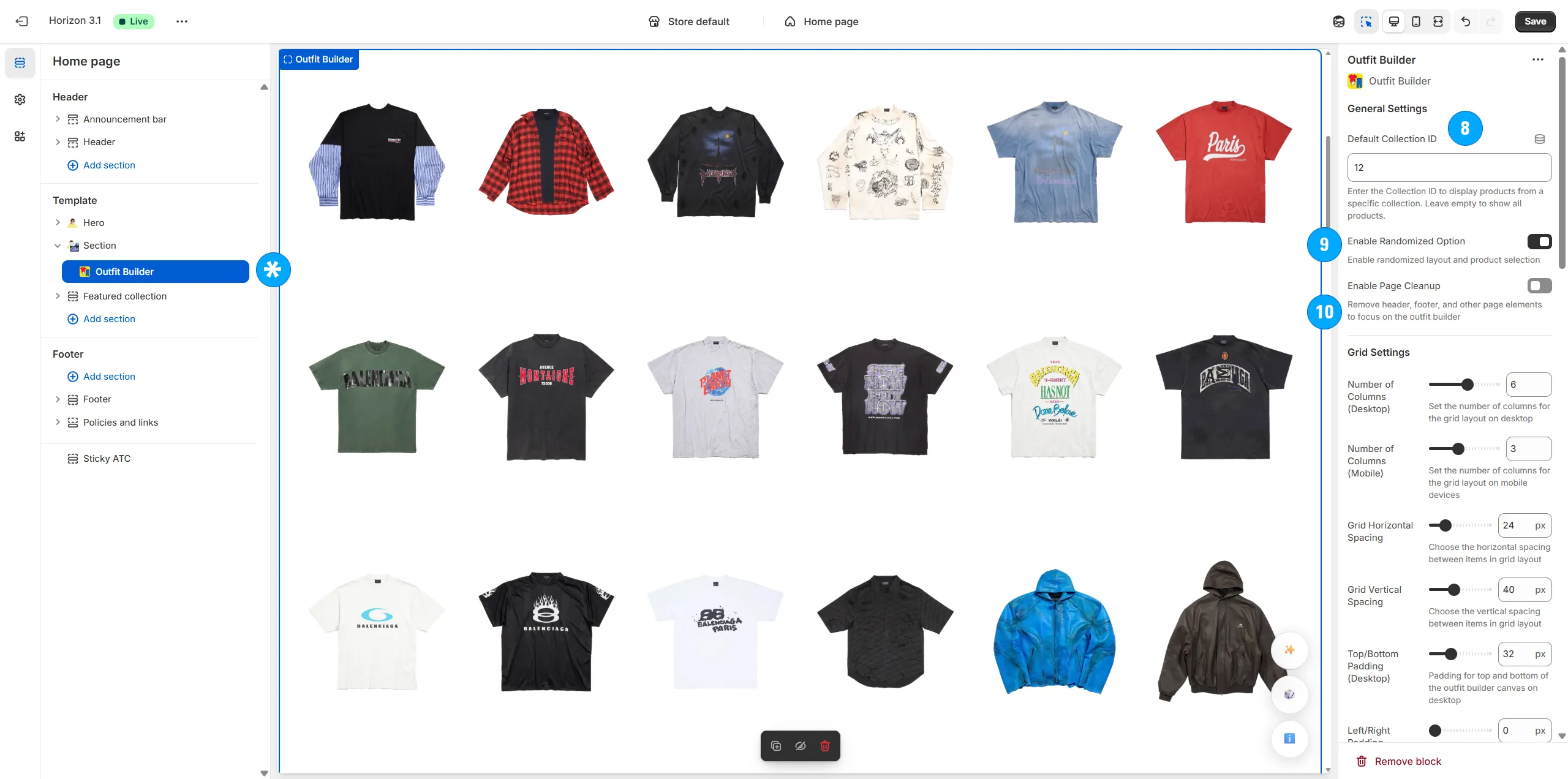 Arrange the type, amount and specific positioning of items on the page (including shirts, pants, shoes, hats, and even odd items like masks, weapons, food, armor, etc).